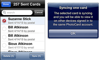(Sync lets you view older sent cards on your other iOS devices. Note that cards sent with