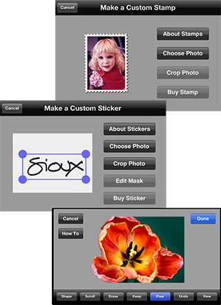 up the sticker maker where you can choose your photo and crop it. Unlike stamps, stickers don't